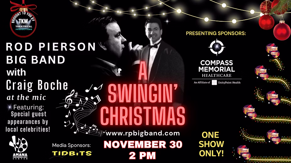 A SWINGIN’ CHRISTMAS WITH ROD PIERSON’s BIG BAND AND CRAIG BOCHE AT THE MIC will be an evening filled with hoppin’ and rockin’ holiday tunes that will undoubtedly get you into the holiday spirit.