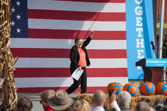 Patty Judge, who is running against U.S. Sen. Chuck Grassley for a U.S. Senate seat, spoke during the rally on Oct. 28, 2016. — photo by Danforth Johnson
