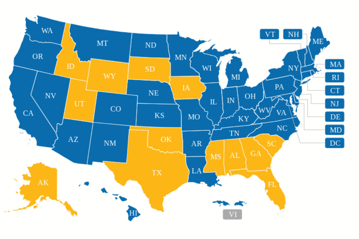 US Dept. of Agriculture map of states participating in Summer EBT program in 2024. The states in yellow rejected the additional federal aid for food insecure families.